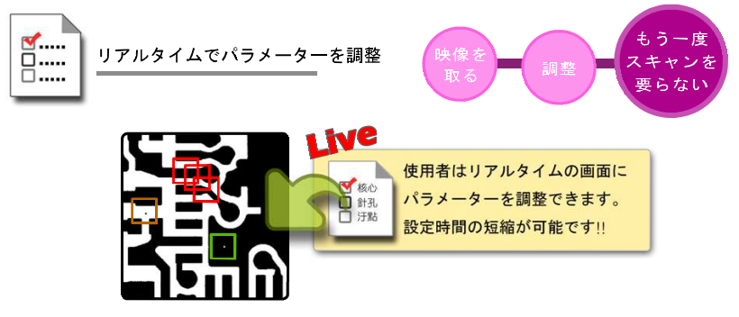 1. スキャンの待ち時間が不要で、すぐに欠陥の再検査を行うことができます。