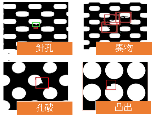 著重於檢測遺漏或增加之PAD/Line、圖像偏移及圖像大小的改變,如多孔/少孔,偏孔…等